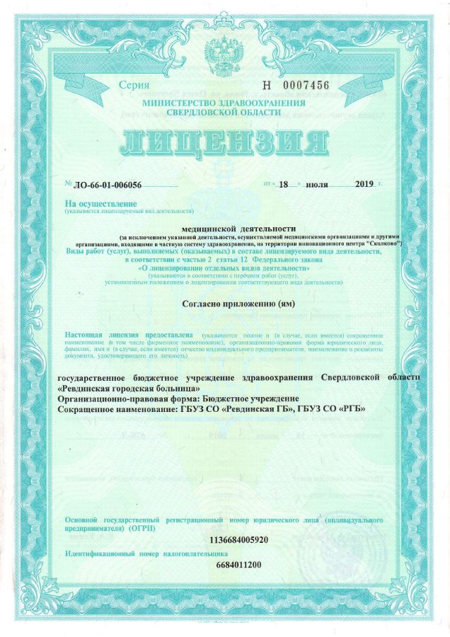 Реквизиты ГБУЗ «Ревдинская городская больница».